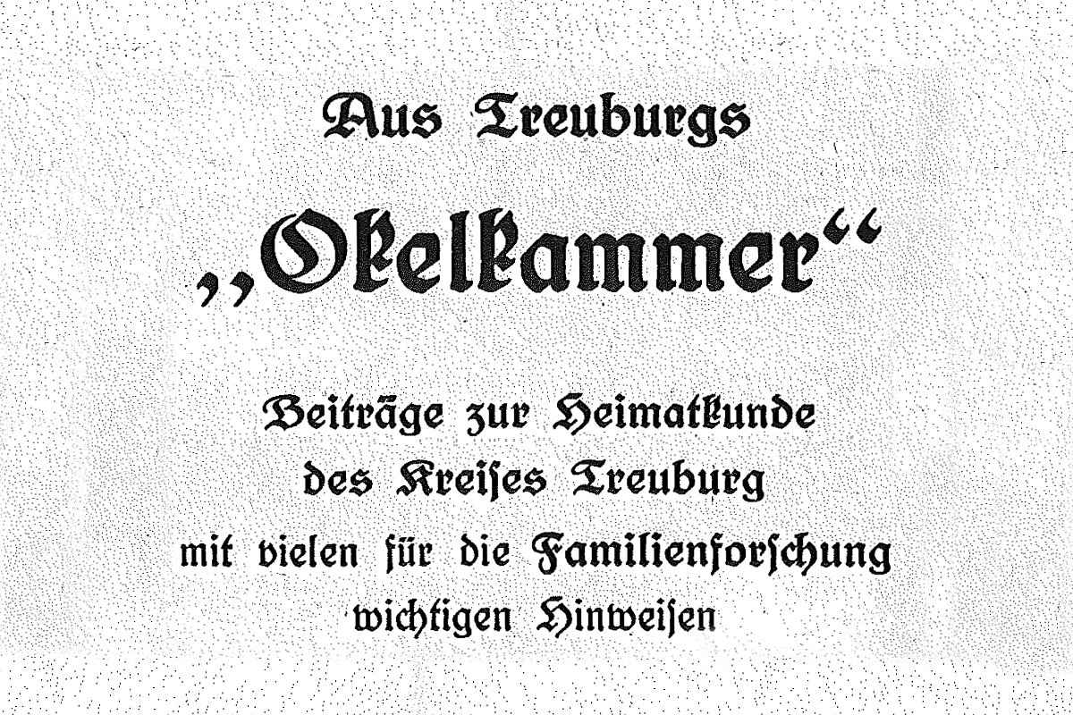 - "Aus Treuburgs Okelkammer" 1. Teil aus einer in sechs Folgen zwischen 1937 und 1940 veröffentlichten Serie aus dem Verlag der Treuburger Zeitung von Albrecht Czygan mit vielen Orts- und Familiennamen aus dem Kreis Oletzko/Treuburg.